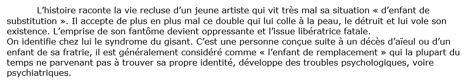 GESIR FILM en projection permanente A l’ENTREPOT 2, Chemin de la Scierie à SERZY et PRIN Les 4, 5 et 12 septembre 2021 de 14h00 à 19h00 Entrée libre En partenariat avec l’association AQUA FORTE GESIR (verbe intransitif) 1. Etre étendu, couché, sans mouvement 2. " Ci-gît... " formule des épitaphes. A Camille Claudel, Vincent Van Gogh, Salvador Dali... Et à tous ces " enfants de remplacement " nés après le décès de leur frère ou de leur soeur, qui souffrent de problèmes identitaires sévères et de troubles psychologiques, voir psychiatriques irréversibles... Le Docteur Salomon Sellam les nomme les Gisants... RETOUR à l’ACCUEIL